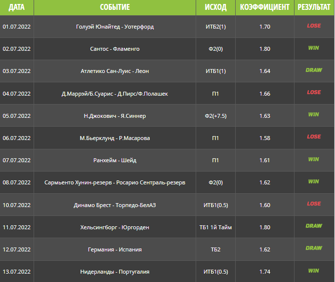 - VIP-ставка – прогноз с коэффициентом от 1.80. Заявленный процент проходимости ставки – 80% на длинной дистанции.